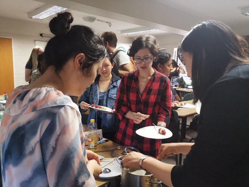 师生们认真听糖葫芦介绍
