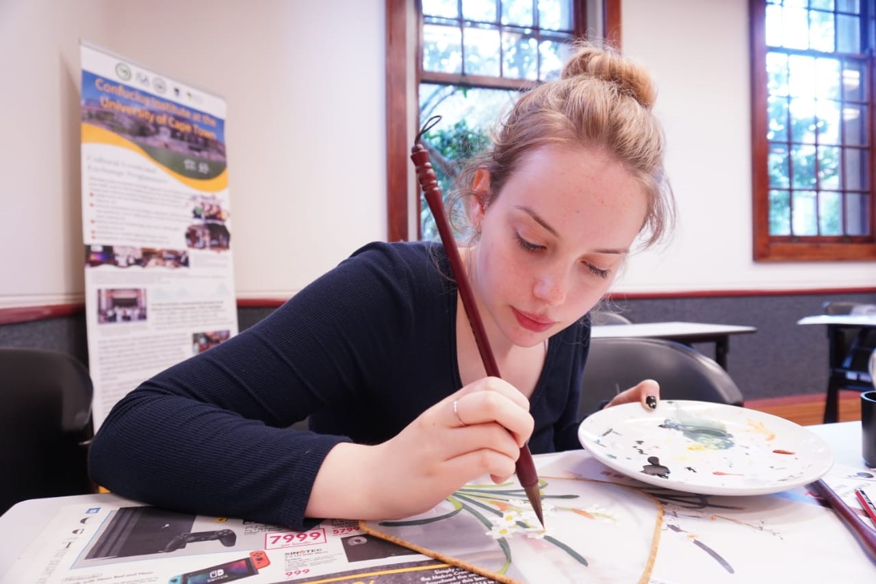 为了给开普敦大学师生提供一个更好地交流和体验中国文化的平台,开普敦大学孔子学院于2020学年开设了“中国手工坊”,活动包括糖葫芦、剪纸、国画、画扇、中国结、做毽子、汉服折纸、青花瓷、吹墨梅花和京剧面具等数十个不同主题,每周五下午举办一期,由志愿者教师闫丽玲担任“坊主”,孔院各位老师轮流担任不同主题活动的“小主”。